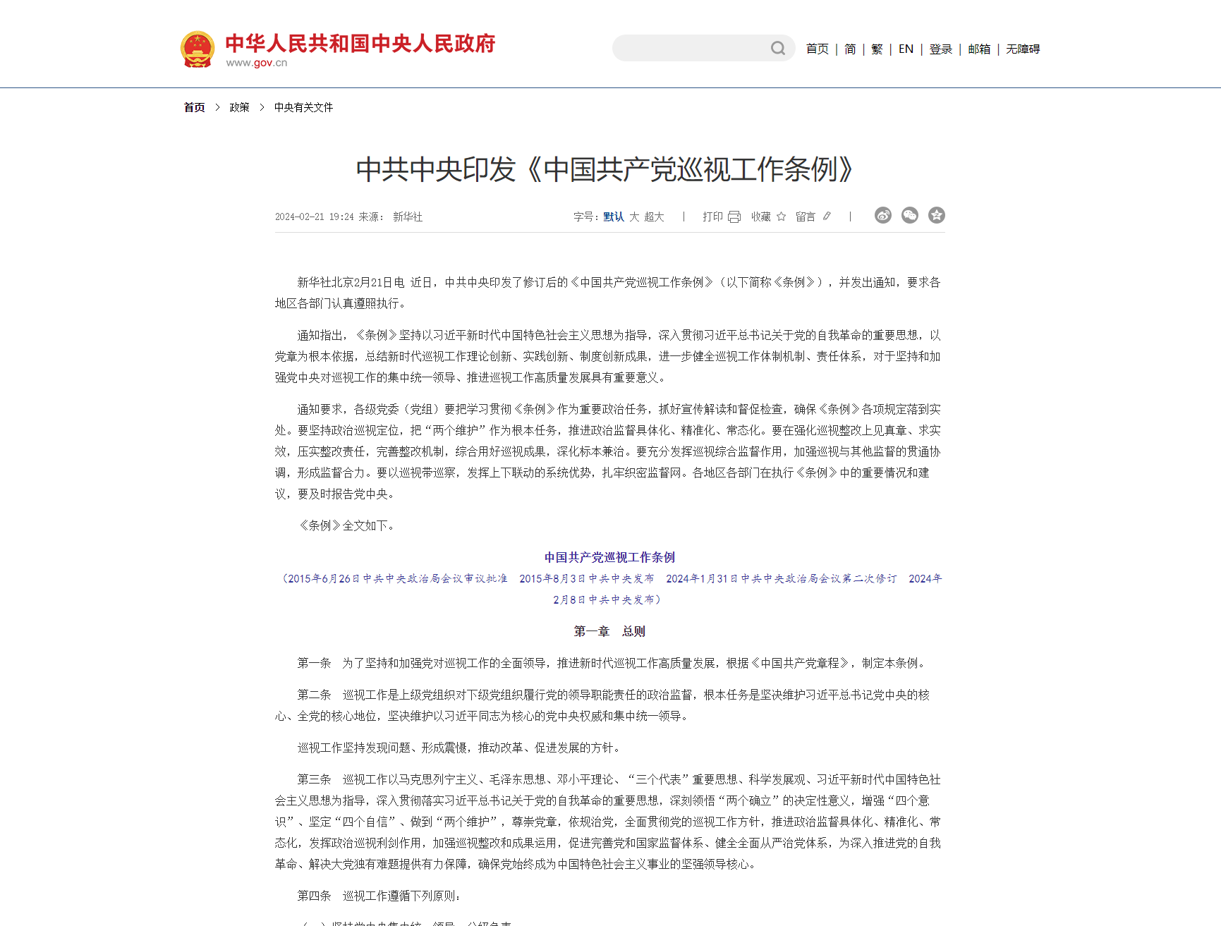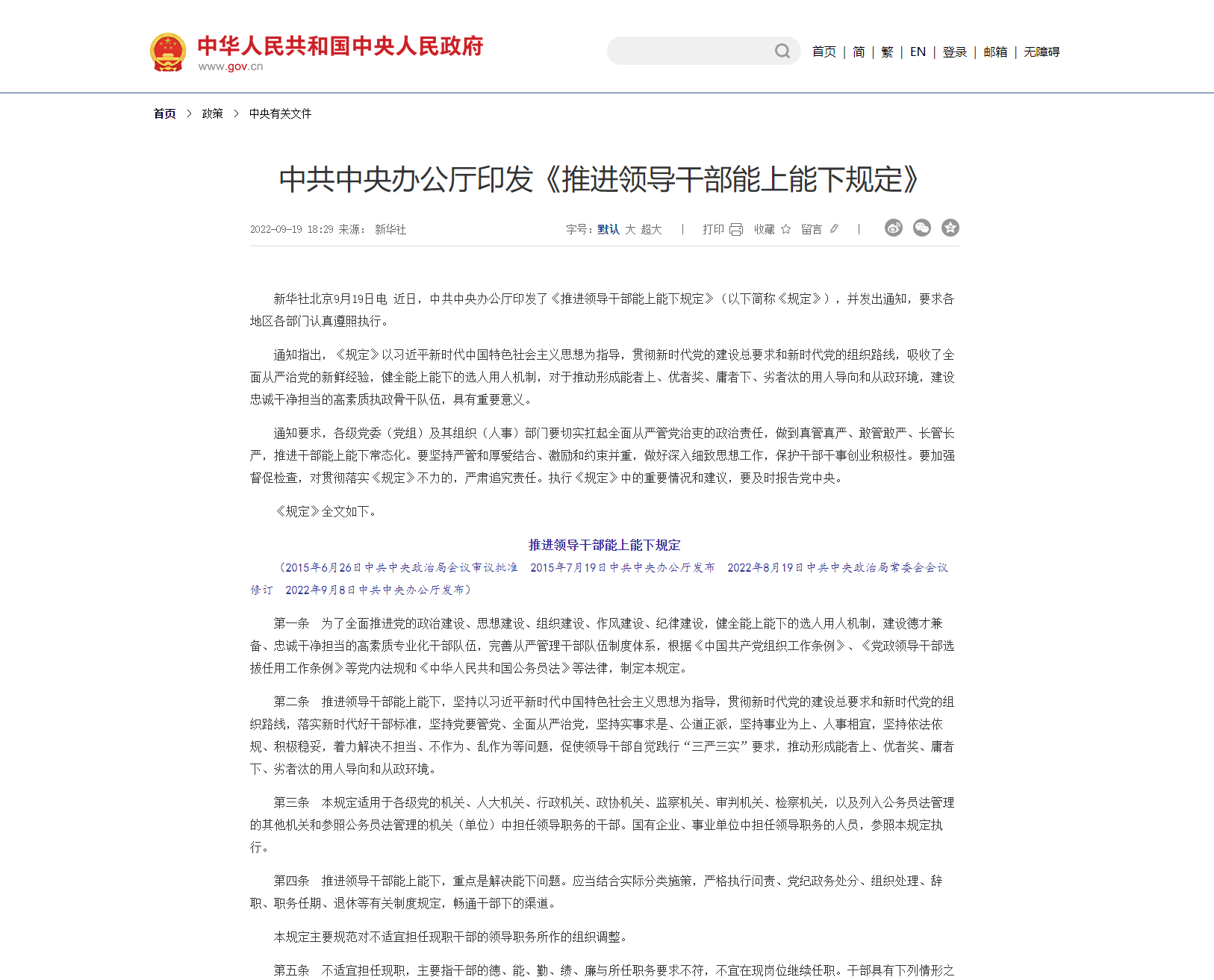 中國(guó)共產(chǎn)黨黨內(nèi)法規(guī)執(zhí)行責(zé)任制規(guī)定(試行)(2019年8月30日中共中央政治局會(huì)議審議批準(zhǔn)2019年9月3日中共中央發(fā)布) 第一條為了提高黨內(nèi)法規(guī)執(zhí)行力,推動(dòng)黨內(nèi)法規(guī)全面深入實(shí)施,根據(jù)《中國(guó)共產(chǎn)黨黨內(nèi)法規(guī)制定條例》,制定本規(guī)定。第二條各級(jí)黨組織和全體黨員負(fù)有遵守黨內(nèi)法規(guī)、維護(hù)黨內(nèi)法規(guī)權(quán)威的義務(wù)。各級(jí)黨組織和黨員領(lǐng)導(dǎo)干部必須增強(qiáng)“四個(gè)意識(shí)”、堅(jiān)定“四個(gè)自信...