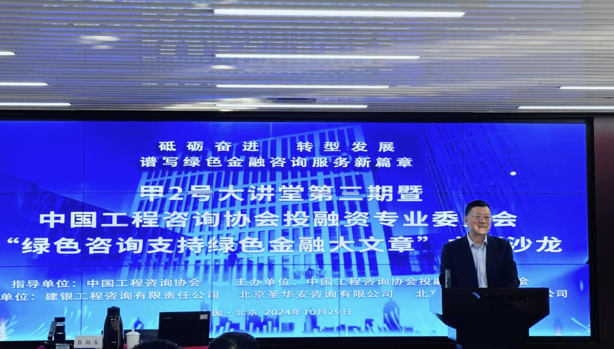 2024年10月29日,中國工程咨詢協(xié)會投融資專業(yè)委員會在北京成功舉辦了“綠色咨詢支持綠色金融大文章”主題沙龍。本次沙龍由建銀工程咨詢有限責(zé)任公司、北京財指南咨詢有限公司和北京圣華安咨詢有限公司承辦。建銀咨詢副總裁、執(zhí)行董事唐曉陽,業(yè)務(wù)總監(jiān)闕金聲、劉海濤等領(lǐng)導(dǎo)出席,沙龍活動由專委會秘書長闕金聲主持。