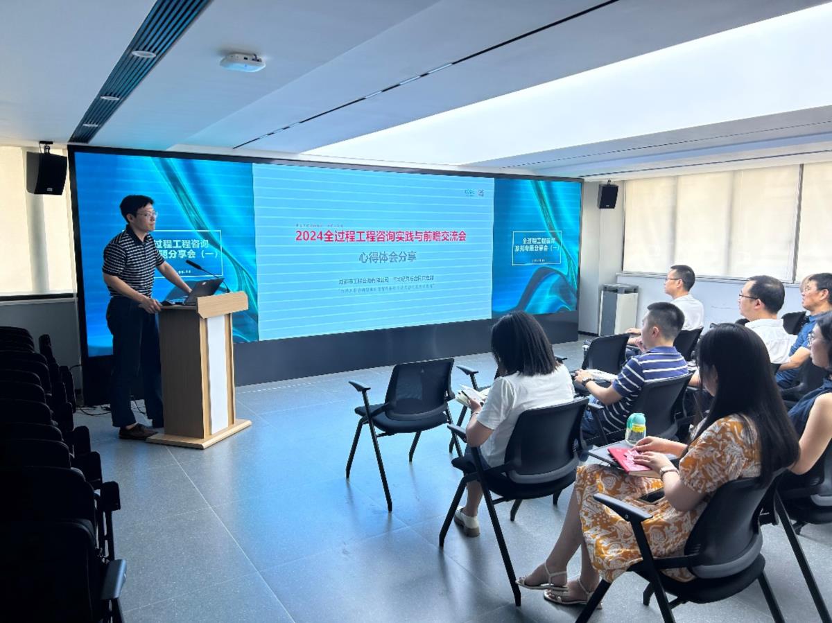 由中國工程咨詢協(xié)會(huì)主辦的“2024年全過程工程咨詢實(shí)踐與前瞻交流會(huì)暨總咨詢師人才培養(yǎng)計(jì)劃”于2024年6月在杭州舉行,成都市工程咨詢有限公司受邀參加此次交流培訓(xùn)。近日,公司市場經(jīng)營與合同管理部屈健同志在會(huì)后總結(jié)學(xué)習(xí)心得,并結(jié)合公司對全過程工程咨詢業(yè)務(wù)的戰(zhàn)略部署及成都世園會(huì)案例,分享了自己的所思所學(xué)。公司領(lǐng)導(dǎo)、各部門負(fù)責(zé)人、技術(shù)骨干、新入職員工等30余人參加了本次分享會(huì)。