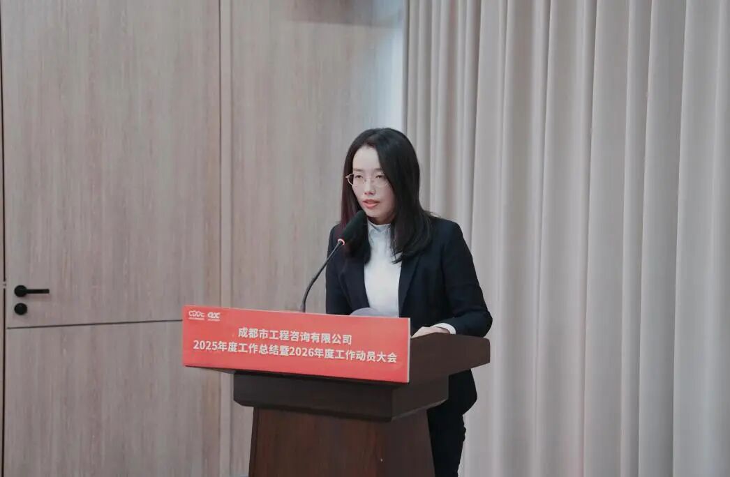 馬躍開新局,咨繪高質(zhì)量。1月28日,成都市工程咨詢有限公司召開2025年度工作總結(jié)暨2026年度工作動(dòng)員大會(huì)。集團(tuán)黨委副書記、副董事長(zhǎng)、總經(jīng)理陸輝,集團(tuán)黨委專職副書記、董事、工會(huì)主席劉洋海出席。公司黨總支書記、董事、總經(jīng)理陳崎虎主持會(huì)議。公司領(lǐng)導(dǎo)班子、公司及魚鳧咨詢公司全體員工參加會(huì)議。